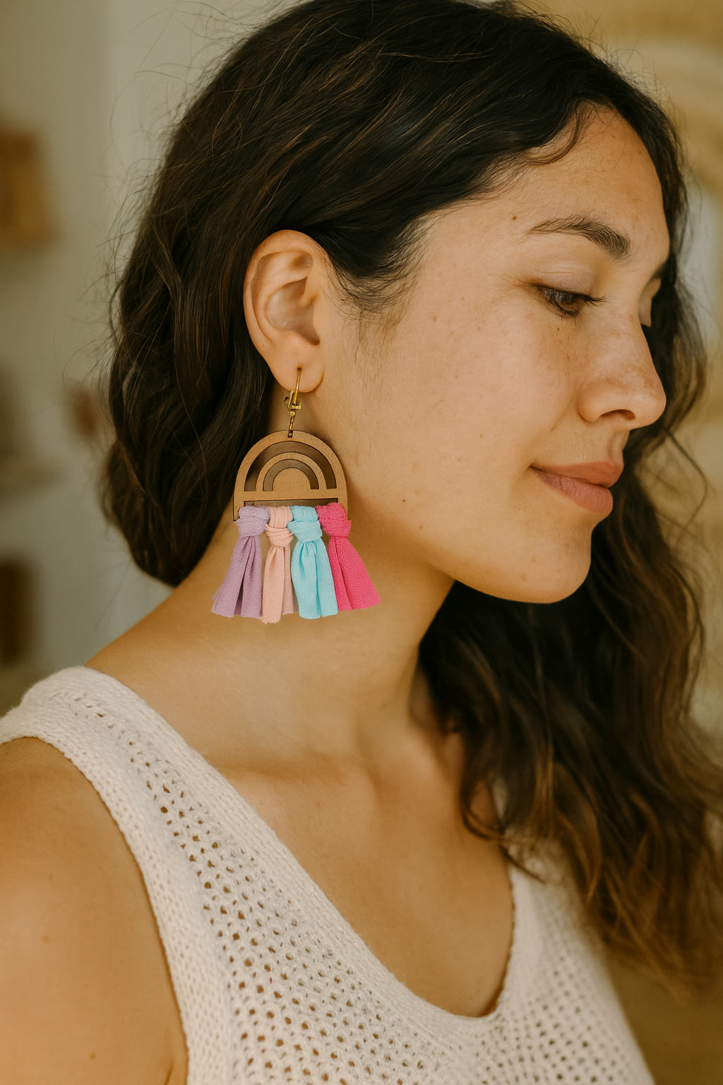 Los Aros Arcoíris Trapillo son exclusivos y únicos, elaborados con trapillo. Perfectos para añadir un toque especial a tu look si eres amante de los colores y el arcoíris. Son livianos y muy cómodos, ideales para llevar contigo a cualquier lugar. ¡Haz que tus accesorios sean tan coloridos como tú!