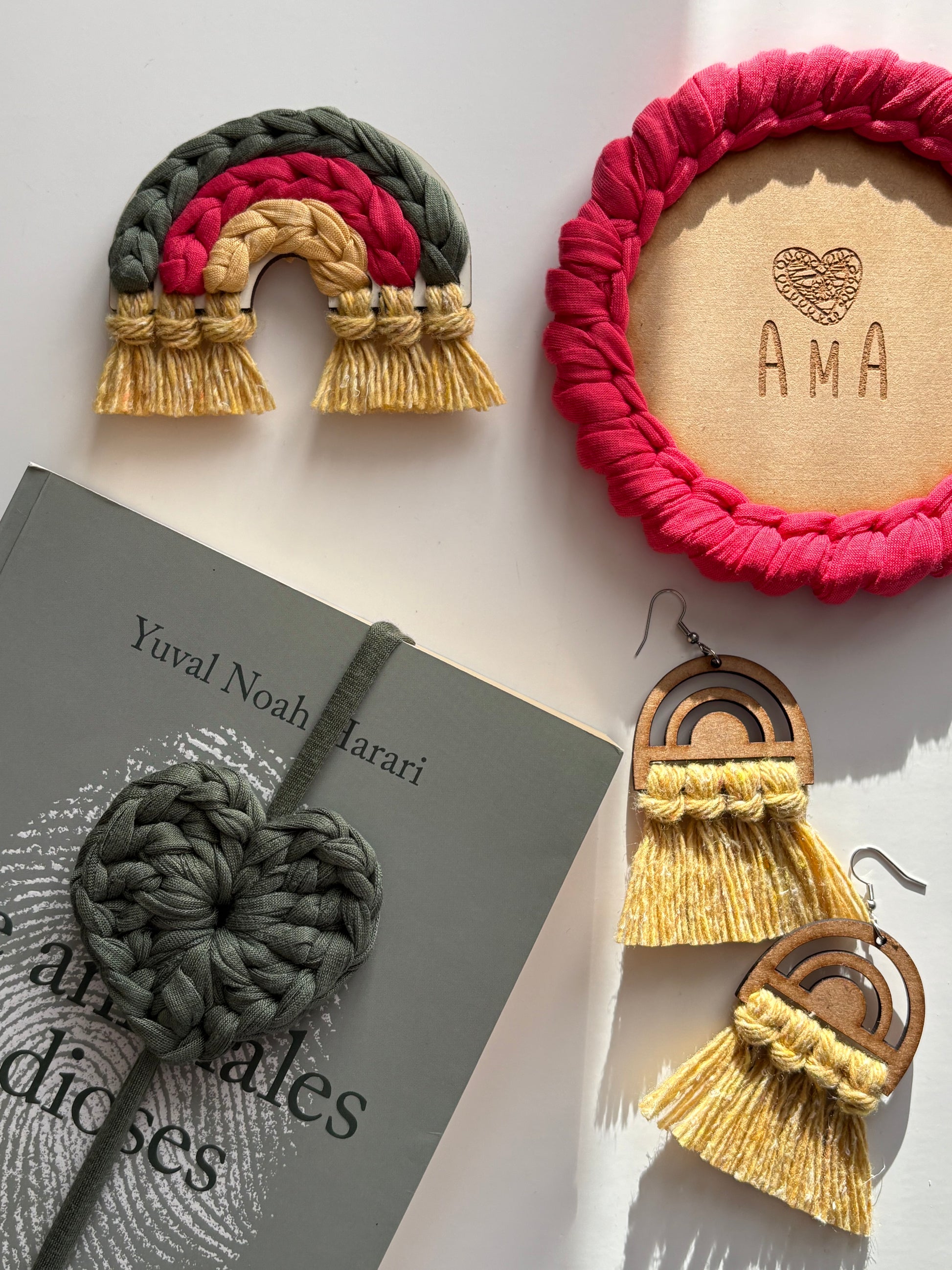 Cada pieza está tejida y elaborada a mano, con dedicación y materiales de calidad como trapillo, cordón de algodón y bases de madera.
