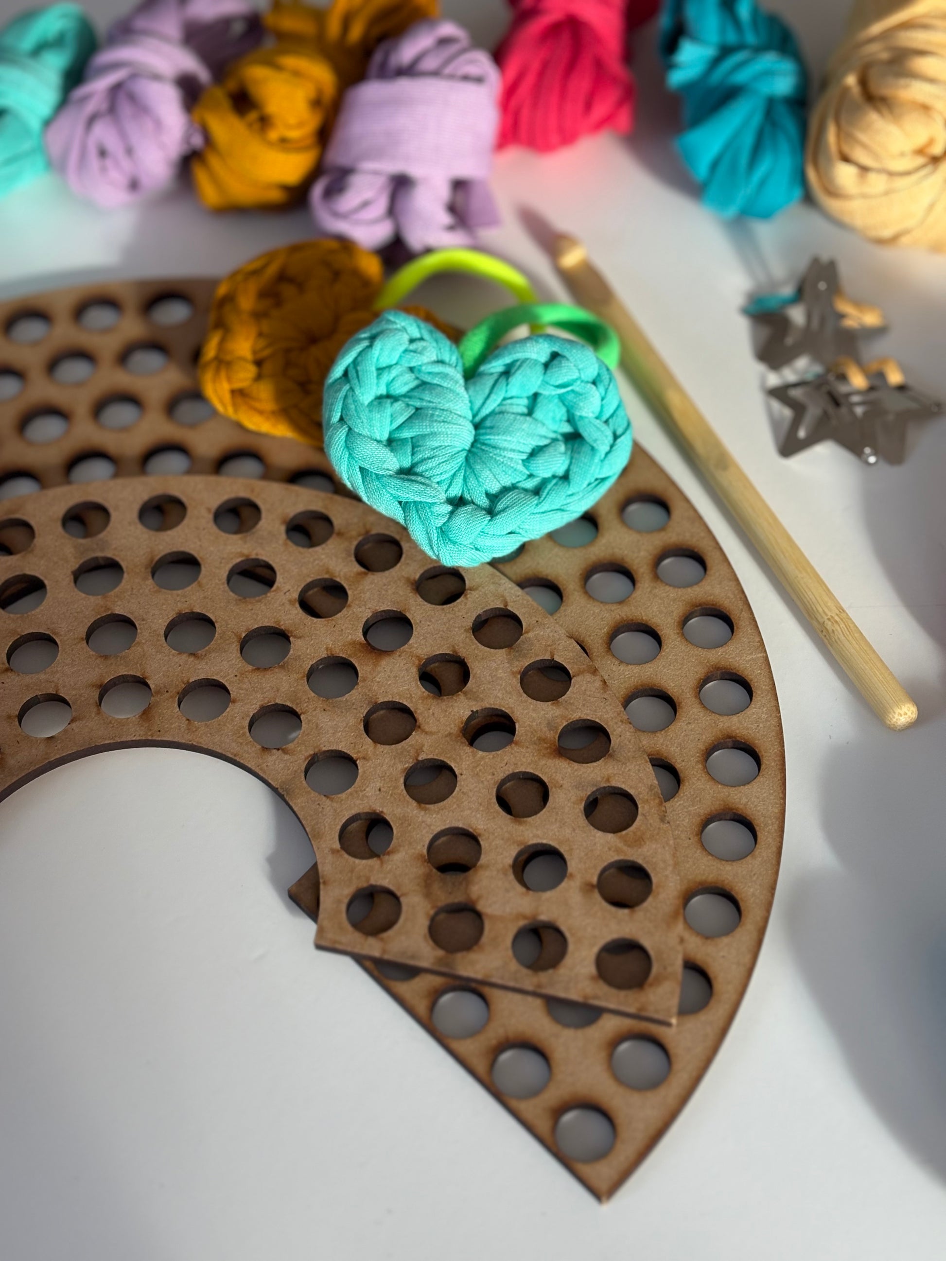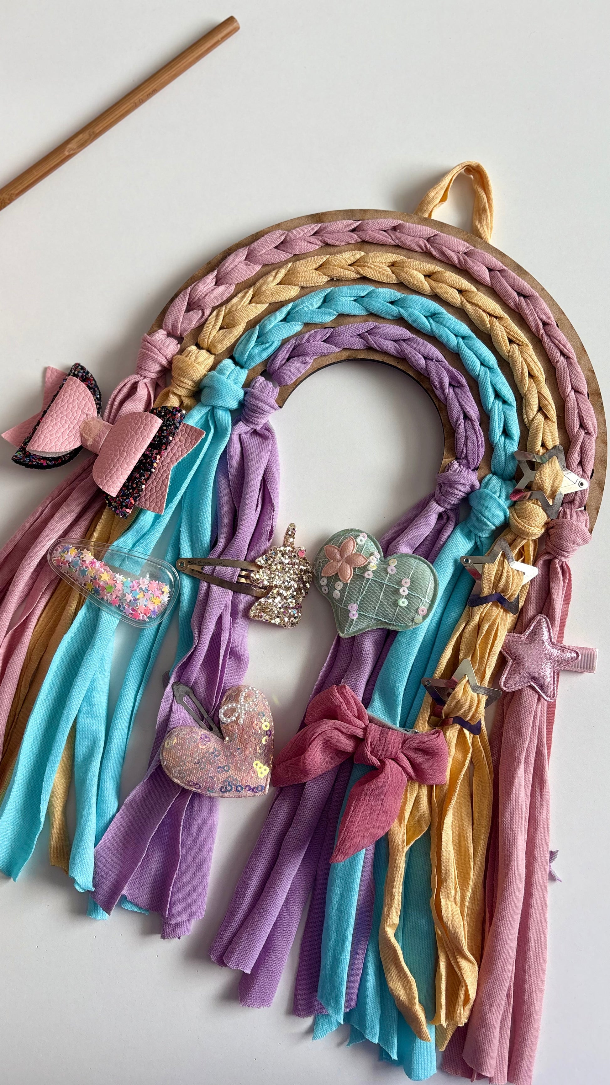 Con este kit podrás crear dos arcoíris decorativos con tus propias manos, ideales para darle color y calidez a cualquier espacio, o para organizar pinches y accesorios de forma creativa.