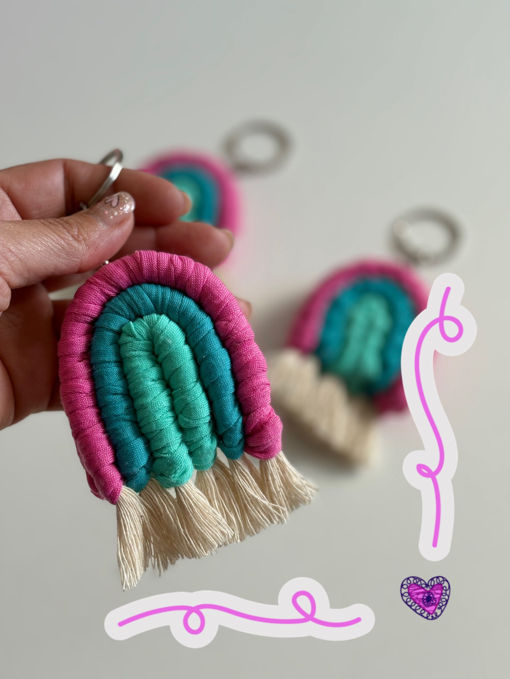 Descubre nuestra colección de Llaveros Arcoíris. Hechos a mano con trapillo y cordón de algodón suave, cada uno representa luz, esperanza y el amor de AMA Deco. Elaborados con dedicación en Chile, diseños y colores únicos, y una resistente argolla metálica para llevar contigo. El regalo o acompañante perfecto para imprimir un toque artesanal en tu día a día. ¡Lleva siempre contigo una historia llena de detalles!